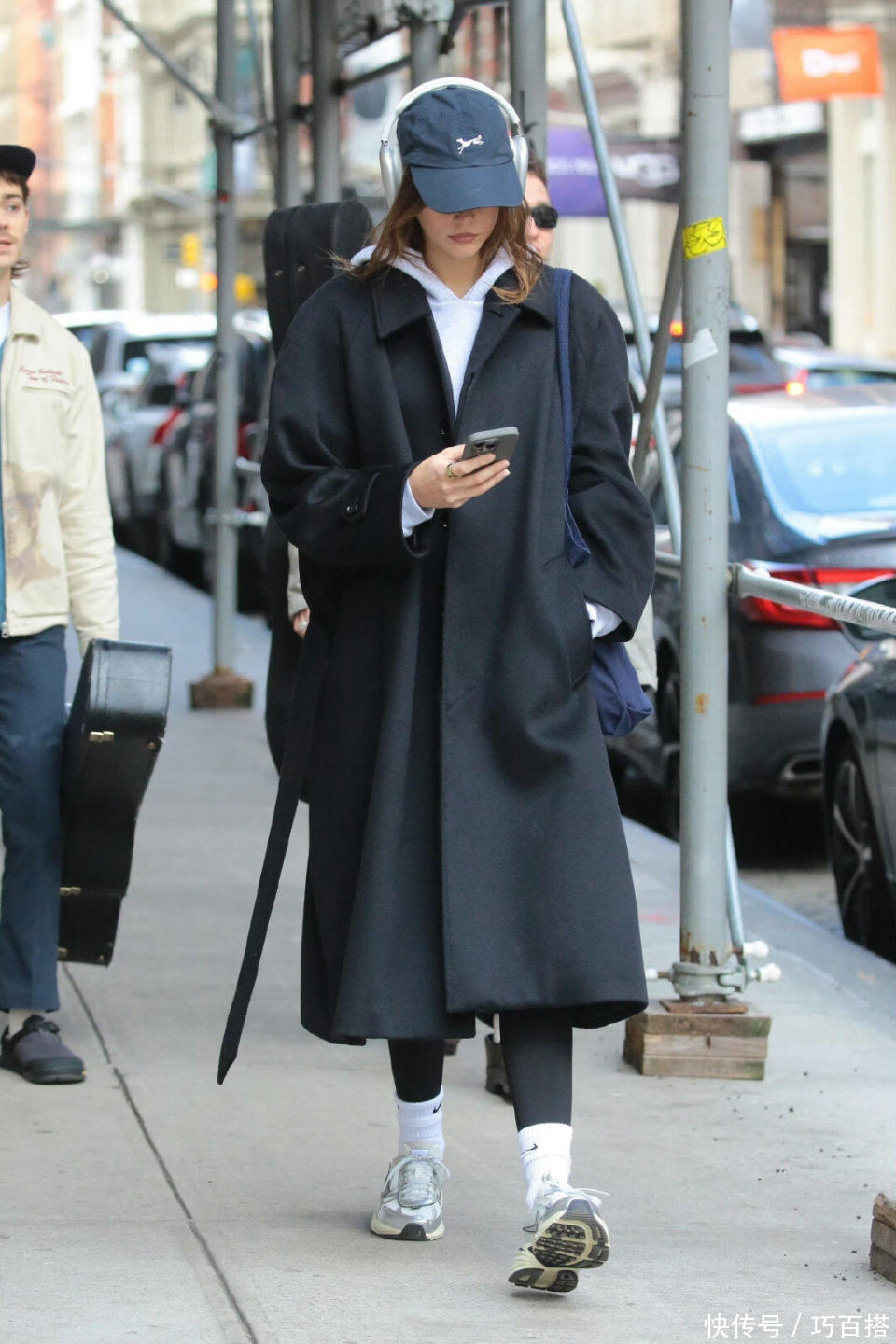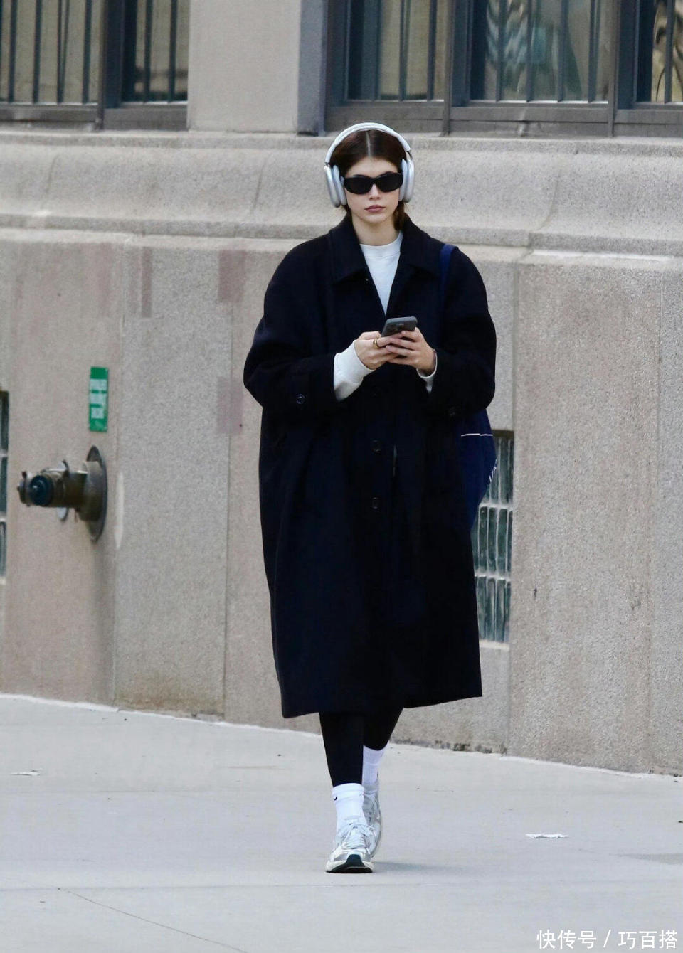 简单利索的搭配模式借鉴价值颇高,博主身上这套经典黑白配造型就是标准模板,黑色廓形大衣与纯白长袖打底叠搭,又美又飒又迷人,非常人性化。